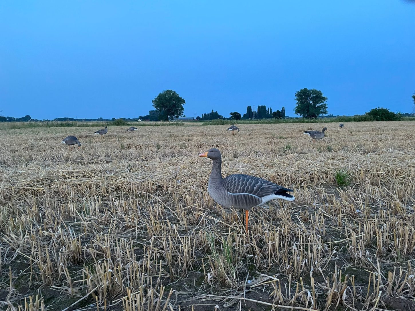 Ganzen zijn slimme vogels en zeker de grauwe gans. Om succes te blijven houden is het belangrijk om af te wisselen om te voorkomen dat de ganzen vaste patronen gaan herkennen. Dat geldt voor meerdere zaken, zorg bijvoorbeeld voor afwisseling in het aantal lokganzen dat je in de lokstal plaatst maar bijv. ook de soort lokkers die je plaatst. Zit je altijd in die ene vaste hut? Probeer het eens op een andere plek. Het zou kunnen dat de standganzen de vaste hut gaan herkennen als gevaar. Is er water in de buurt? Het toevoegen van een aantal drijvende lokganzen (floaters) is dan het proberen waard. “gewone” lokkers kunnen dan in de overgang van het land naar het water geplaatst worden. Op plaatsen waar veel op ganzen wordt gejaagd kan het ook de moeite waard zijn eens te proberen om wat later op de dag het veld in te gaan. Tot slot; uitproberen en soms improviseren kan tot resultaat leiden!