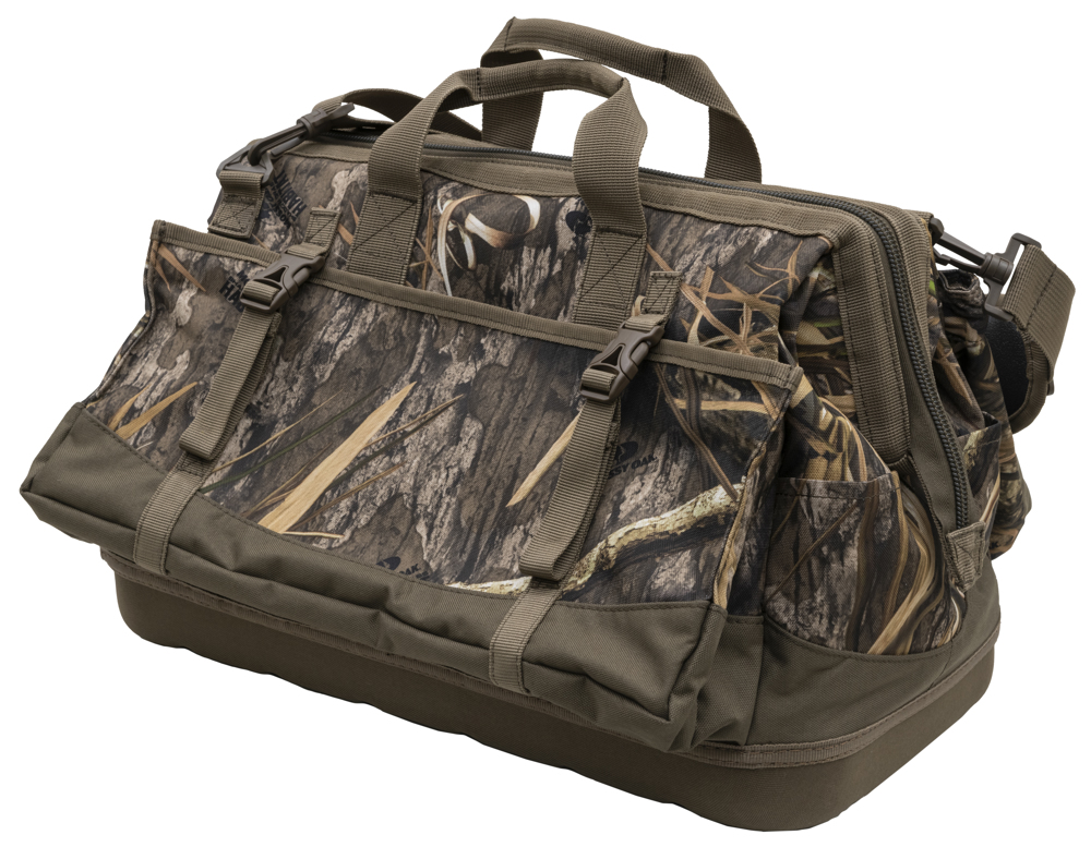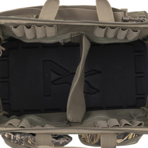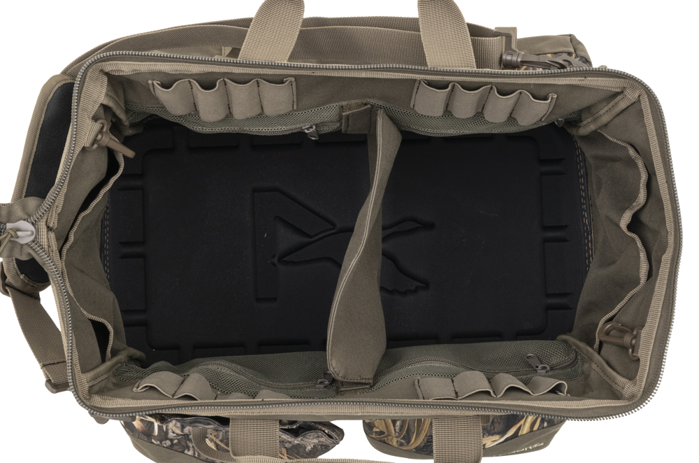 Pit Blind Bag har et stort åbent hovedrum med en udtagelig skillevæg, så du kan tilpasse indholdet. Ekstra inderlommer holder mindre ting adskilt og inden for rækkevidde. På ydersiden har Pit Blind Bag to lommer, der kan klappes op. De er designet til at holde styr på forskellige patroner og give hurtig adgang til dem, når der skiftes mellem patroner. Der er også en ekstra stor yderlomme til en termodrikkeholder eller som ekstra opbevaring til dit udstyr. To indsyede håndtag flankerer den robuste top med lynlås, mens en aftagelig, justerbar og polstret skulderrem gør det muligt at bære den håndfrit. De vigtigste funktioner fuldendes af et vandtæt, præformet bundpanel, som giver ekstra støtte og beskyttelse af indholdet, når tasken står på våde overflader. Hovedrummet giver nem adgang til grejet Hovedrummet har en udtagelig skillevæg og andre lommer, så du kan holde styr på dit grej To ydre rum er ideelle til forskellige skaller.